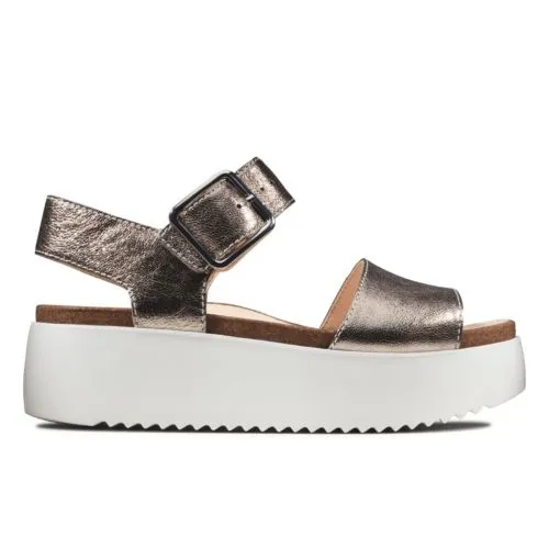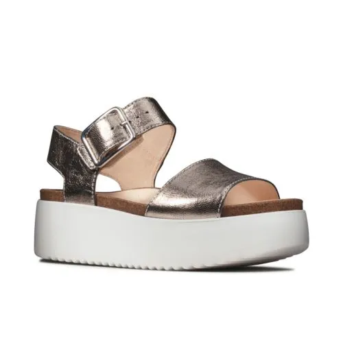Inspired by our popular Botanic Ivy silhouette, this sandal offers an on-trend twist with the 6cm flatform sole. The metallic leather upper features a chunky adjustable buckle, while the cushioned footbed offers lasting comfort for bare feet. Finished with sawtooth detailing on the EVA sole for extra grip and edginess.