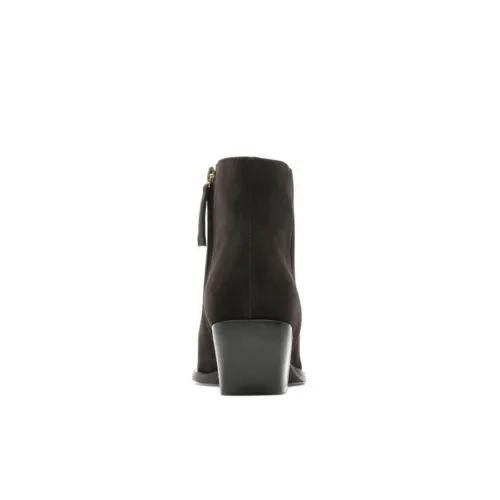 Tap into the Western trend in ankle boot Isabella Zip. The soft dark brown suede upper is crafted on a contemporary block heel, for total comfort and confident steps. An easy on/off zip makes this style ideal for days on the go ? and the pointed toe is giving us total frontier vibes, too. Pair with midi skirts or your favourite denim for a look that?s as cool as it is classic.