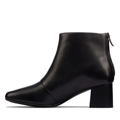 With a wearable 5.5cm heel, Sheer55 Zip is an effortless ankle boot with back zip for easy on/off and sleek lines. In premium black leather and an on-trend square toe, it is a contemporary classic moving from office to weekend.