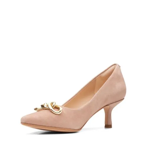 Bringing elegant charm to your go-to heels, the Violet 55 Trim shoe will have you feeling like Cinderella. In luxurious praline suede, they work a classic pointed toe and gold-tone embellishment for a premium feel.