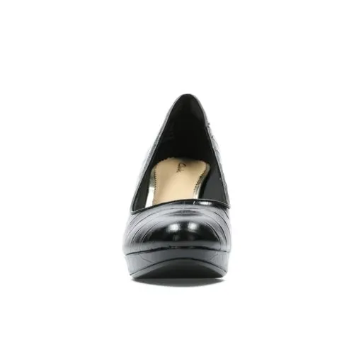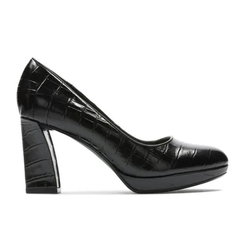 This seasons statement court, Vista Court has a premium sculpted pump profile. The black croc platform is a dress and everyday wardrobe staple with elegant lines and high heel feel that makes it ultra-versatile and wearable.